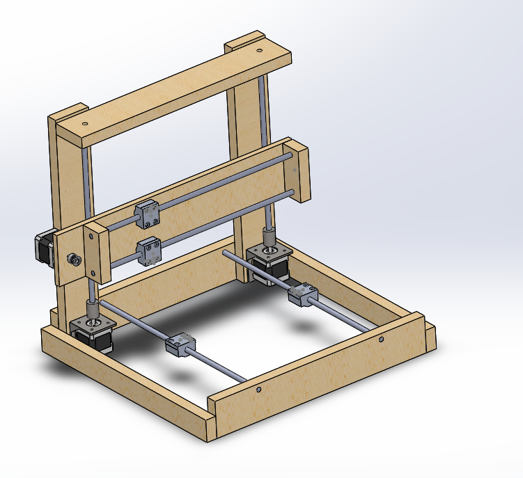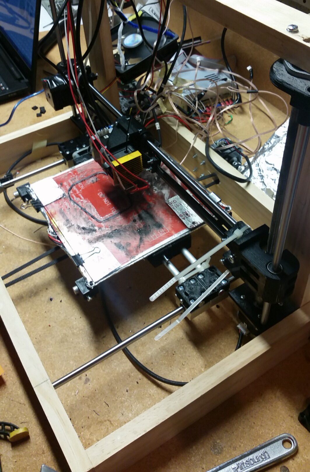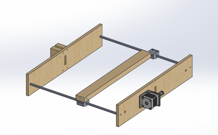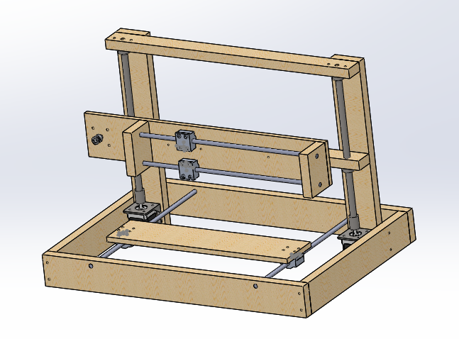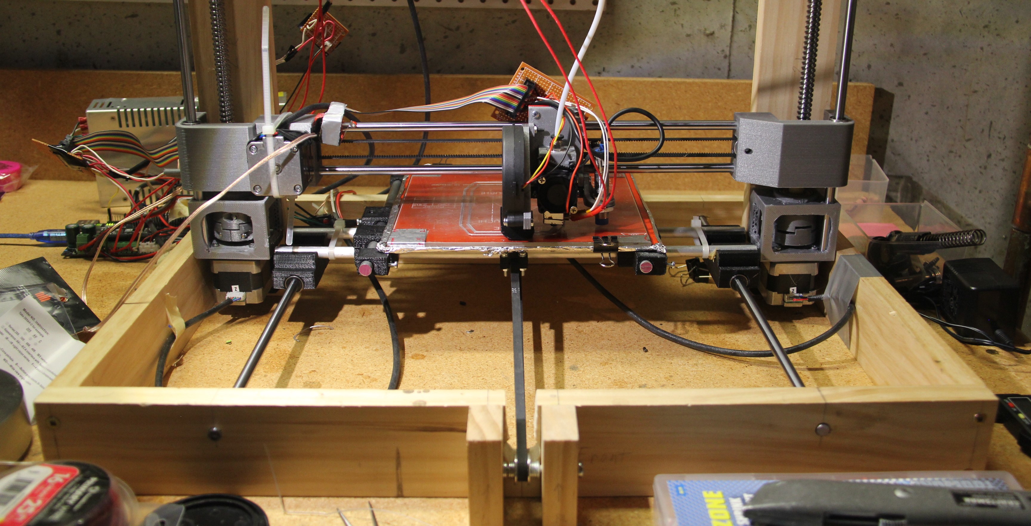 There are some serious problems with this design though. The X-axis is supported completely by the threaded rod, the Y-axis is a piece of wood, and don’t get me started about the X-carriage.