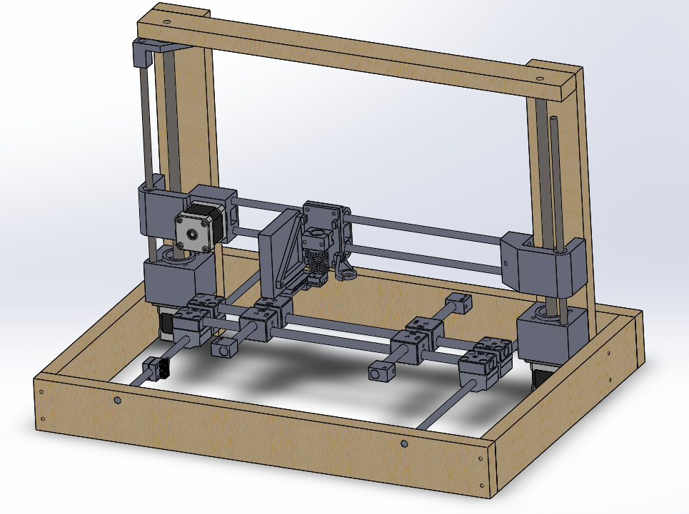 Okay. Let’s try this again. I needed a more rigid frame. For that, I went online and drew inspiration from different 3d printers that I found in Google Images. There’s no hiding that the Prusa I3 is the most popular printer design out there, so my design copies the major features of the I3.